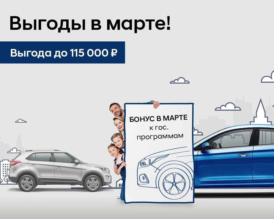 С 1 марта 2019 г. в дилерском центре «Динамика Калининград Хёндэ» возобновила действие программа «Семейный автомобиль» на покупку Hyundai Solaris и Creta. Приобретая Hyundai Solaris или Creta в марте, вы можете получить скидку в 10% от стоимости автомобиля.