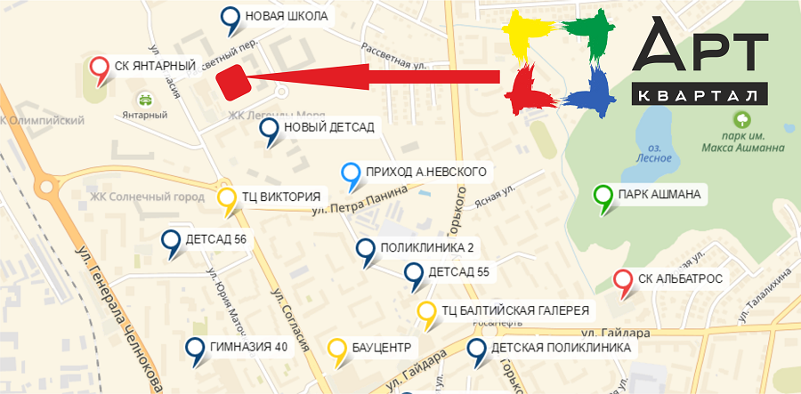 Жилой комплекс «Арт квартал» строится в самом сердце микрорайона Сельма, откуда легко добраться до центра на автомобиле или общественном транспорте, а также есть прямой выезд к Окружной, а там уже рукой подать до побережья. Также до моря без пробок можно добраться на скоростном поезде «Ласточка», который как раз останавливается на «Сельме». Кстати, в обратную сторону — к центру — также можно доехать на электричке, это займёт буквально несколько минут.