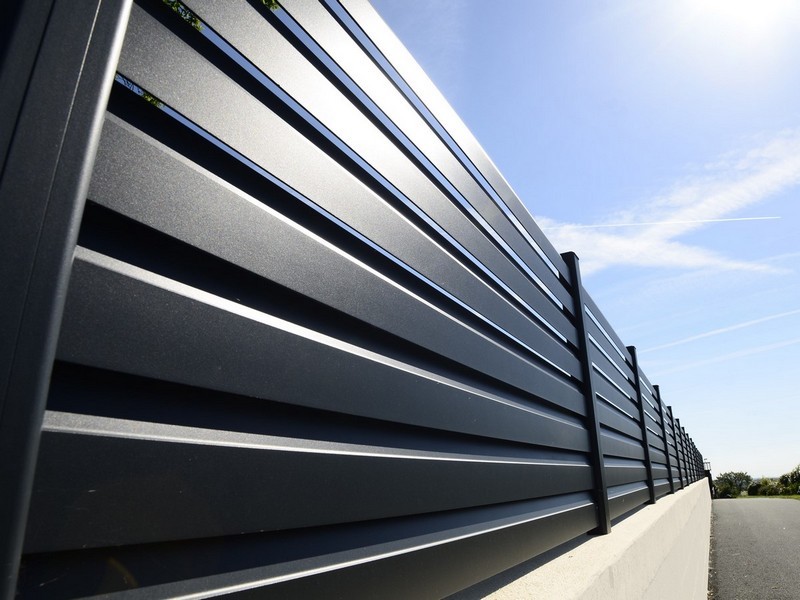Это лёгкий и практичный вариант забора, который больше подходит для частного дома. Штакеты делают из алюминия с полимерным покрытием, не требует ухода и может прослужить несколько десятилетий. Штакеты прикручиваются саморезами к трубе с пресс-шайбой, они широкие и хорошо закрывают огораживаемую территорию.