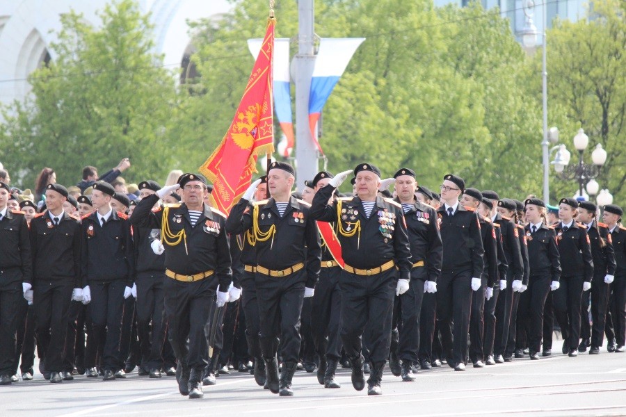 В 2018 году 20 кадет школы принимали участие в параде Победы в Калининграде, а в нынешнем году школу на площади Победы представлял парадный расчет из 109 кадет и офицеров.