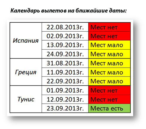 Предлагаем вашему вниманию календарь вылетов с наличием мест по всем направлениям и стоимость туров в Турцию на туры в ближайшие даты.