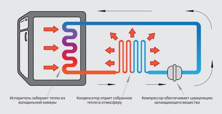 По факту это тот же холодильник, который действует наоборот. Наверняка каждый видел, что на обратной стороне холодильника — решётка, которая постоянно нагревается, а внутри самой камеры — холод.