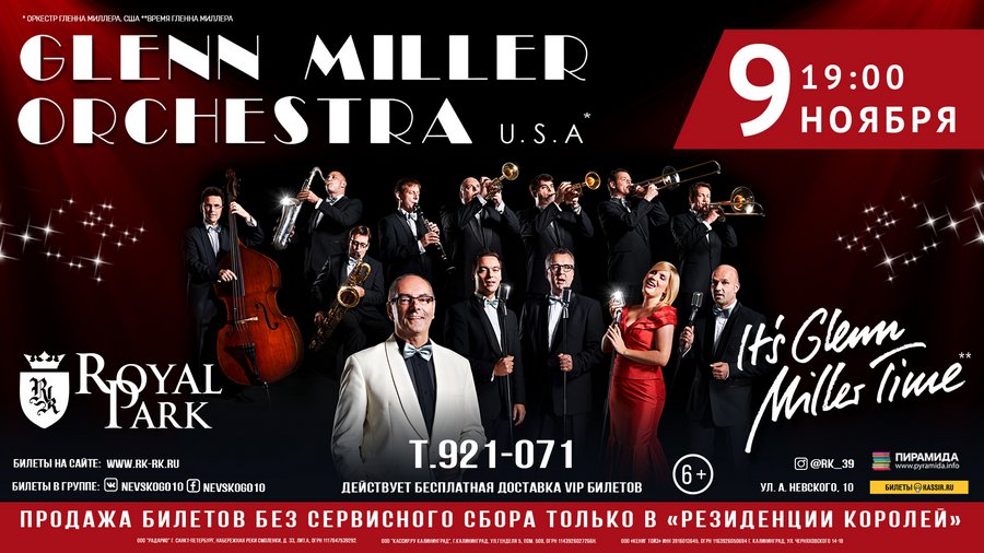 Именно в этот вечер для всех гостей выступит один из самых успешных джазовых коллективов мира — оркестр Гленна Миллера (U.S.A) с новой программой.