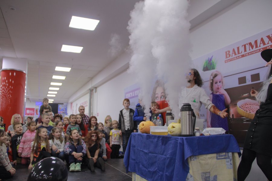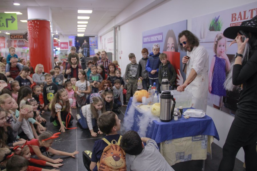 На сцене всех гостей мероприятия развлекал настоящий Граф Дракула, своими необычными танцами зрителей покорили чёрно-красные монстры театра «Шкаф», а «База Чудес» удивила загадочным иллюзионным шоу. На празднике в стиле Хэллоуина профессор удивлял детей необычными экспериментами и угощал волшебным зельем. Мальчишки и девчонки восторженно следили за чудесами науки и дегустировали настоящее колдовское зелье.