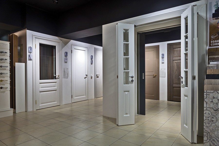 В зале шоурума площадью 400 м2 на ул.Гагарина д.15 представлено более 200 моделей дверей: