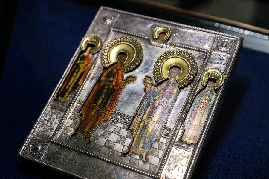 В Музее янтаря продолжает работу выставка «Русское художественное серебро» из архангельского музейного объединения «Художественная культура Русского Севера». «Новый Калининград» посетил уникальную экспозицию и узнал, какие языческие мотивы присутствуют на окладах христианских икон, кто и зачем «дырявил» их серебряные ризы, и что общего у дамской сумочки и средневековой кольчуги.