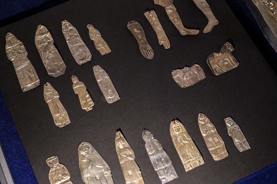 Кстати, на старых иконах до сих пор можно разглядеть следы от небольших гвоздиков. С их помощью к ним в своё время крепились оклады. Сами же ризы «страдали» от вотивных предметов, которые крепили на них. И в этом тоже легко проследить переплетение языческого и христианского в сознании людей. «Если у человека болела рука, нога или, например, были проблемы с коровой или лошадью, он заказывал мастеру-серебрянику их изображения, а затем они крепились к окладу. Многие иконы в храмах были увешаны вотивными предметами, а затем при Петре Первом традиция стала сходить на нет», — говорит Ирина Торопова.