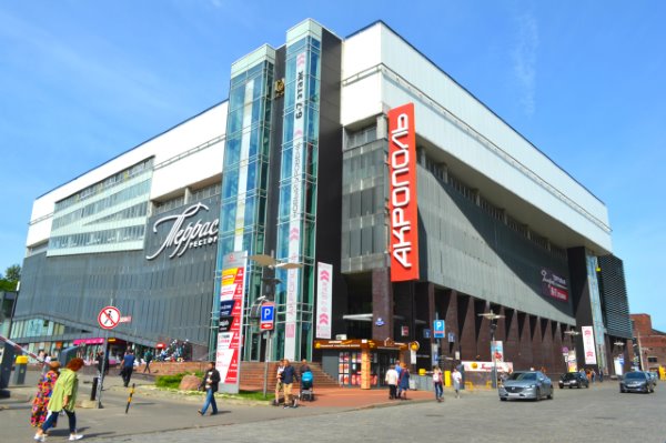 Торгово-офисный центр «Акрополь» — один из первых крупнейших торговых комплексов, расположившихся в центре Калининграда, в нескольких минутах ходьбы от площади Победы и Центрального рынка. Уникальный семиэтажный центр включает в себя более 150 магазинов, 100 офисных помещений, многоуровневый и уличный паркинг на 520 машин. На территории торгового центра также расположены салоны красоты, рестораны японской и европейской кухни, русское бистро и фуд-проект здорового питания. Главное украшение комплекса — музыкальный фонтан, расположенный в «Ресторанном дворике» на 7 торговом этаже.