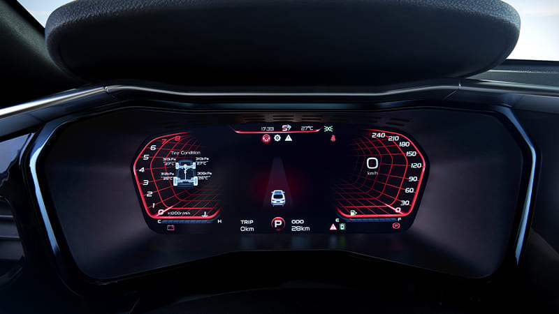 — Цифровая приборная панель водителя меняется в зависимости от выбранного режима езды — комфорт, спорт, эко, снег, внедорожный.