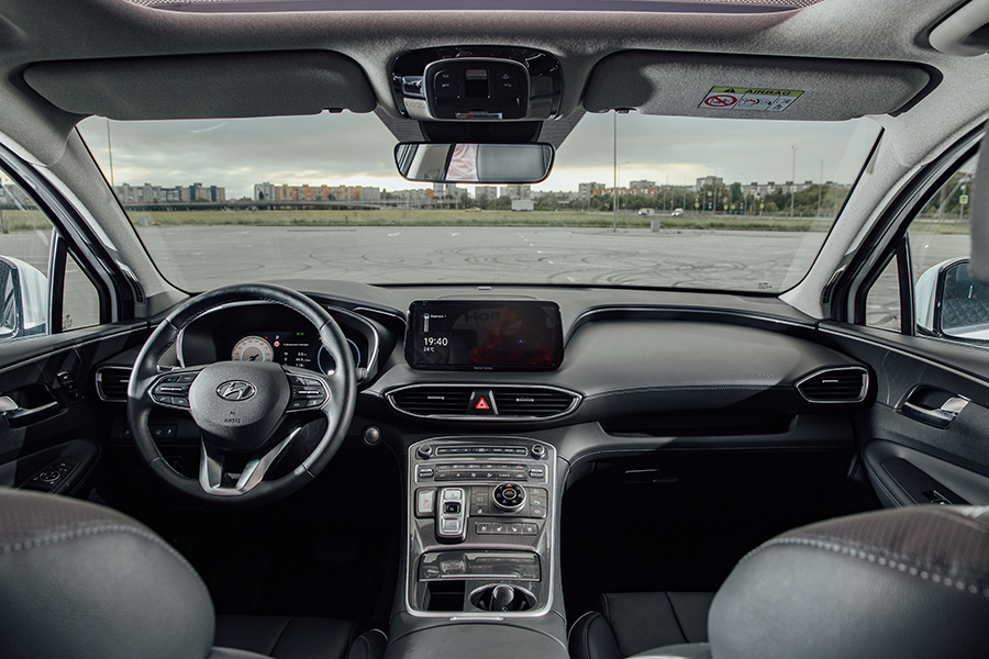 Безусловно, интерьер Hyundai Santa Fe впечатляет и своей продуманностью деталей, и приятными на ощупь материалами отделки салона. Присутствует ощущение какой-то «монументальности» при контакте с обновленным интерьером. «Парящая центральная консоль» — это одно из самых интересных нововведений в новой Santa Fe. Большие экраны приборной панели и мультимедийной системы стали намного удобней для водителя.