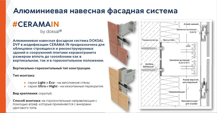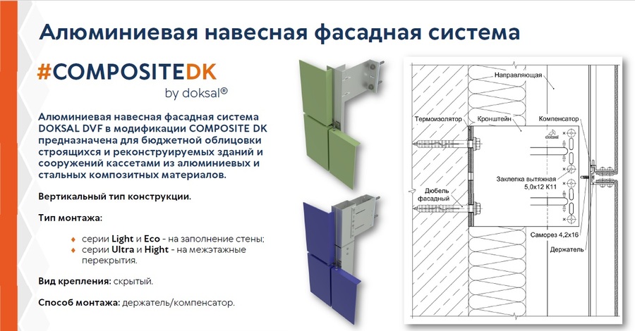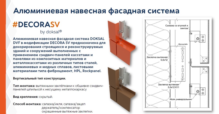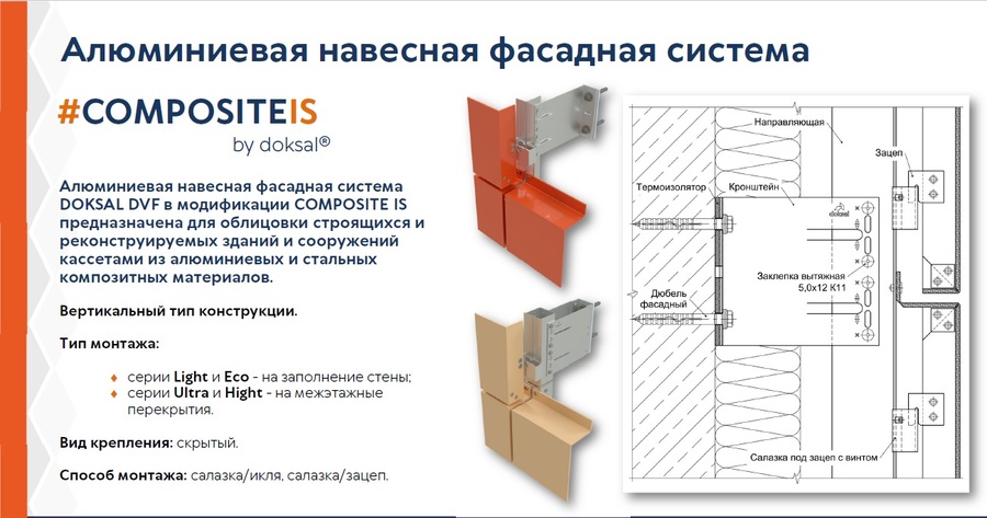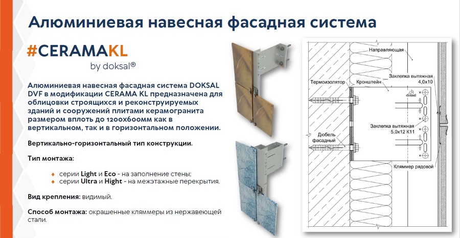 Компания «ДОКСАЛ» работает в России с 2008 года. Мы проектируем и постоянно совершенствуем подсистемы для любых облицовок вентфасада, в том числе: