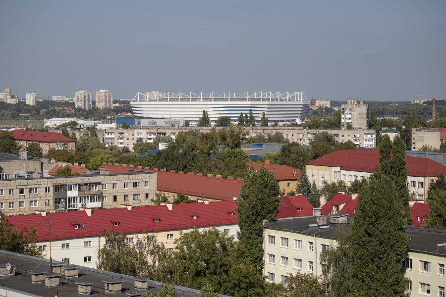 С верхних этажей открывается потрясающий панорамный вид на город, с одной стороны виден Остров им. И.Канта и стадион «Калининград», с другой — современный урбанистический вид.