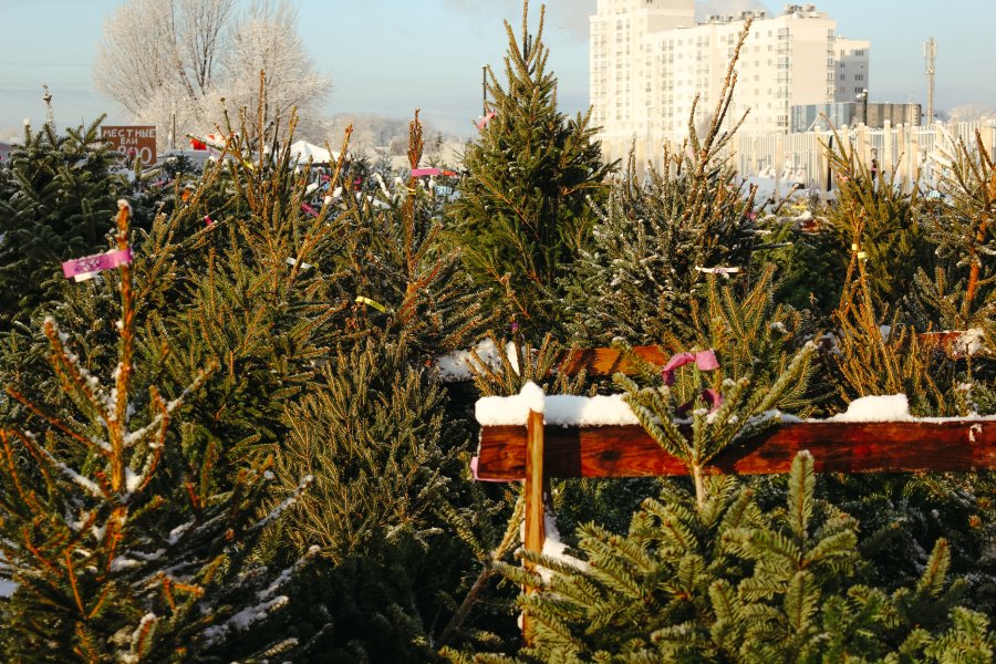 На площади более чем 2000 кв.м вы найдете огромное количество разных видов деревьев, среди которых есть классические северные ели, пихты, живые сосны, ёлки в горшках, сортовые голубые ели разных размеров. Дополнительно сможете приобрести новогодние подарки, украшения для ёлочки, а также купить вкусные натуральные продукты для праздничного стола. По выходным дням рядом работает фермерская ярмарка, а с 25 по 31 декабря она будет функционировать каждый день.
