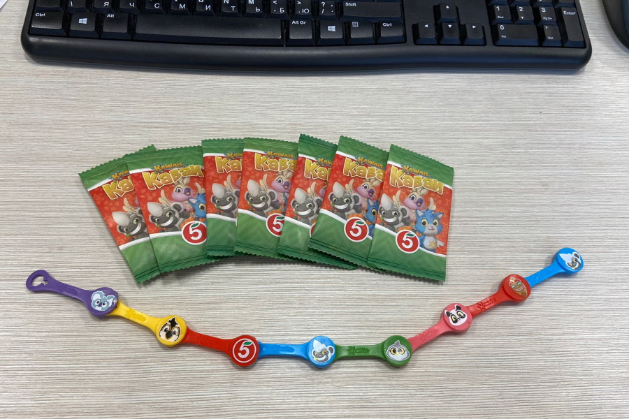 Совершая покупки в магазине торговой сети или воспользовавшись сервисом «Пятёрочка Доставка», за каждые 600 рублей в чеке покупатель получит «каваи» — миниатюрную игрушку, которую можно использовать в качестве брелока, либо, соединяя фигурки друг с другом, составлять браслеты и другие детские украшения в различных комбинациях. Полная коллекция включает в себя 16 игрушек, из которых 15 – с изображением милых персонажей (Неко, Пинки, Конга и других героев) и одна фирменная от «Пятёрочки».