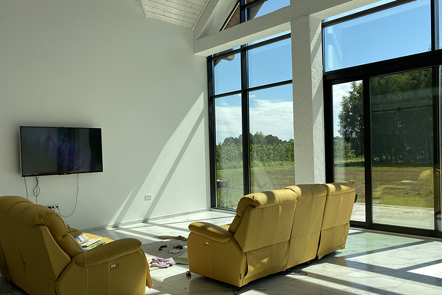 Частный дом с фасадным алюминием и раздвижной дверью — для тех, кто любит много пространства и естественный солнечный свет.