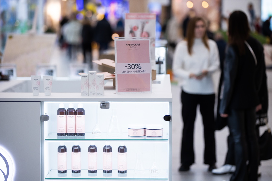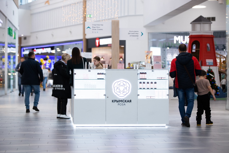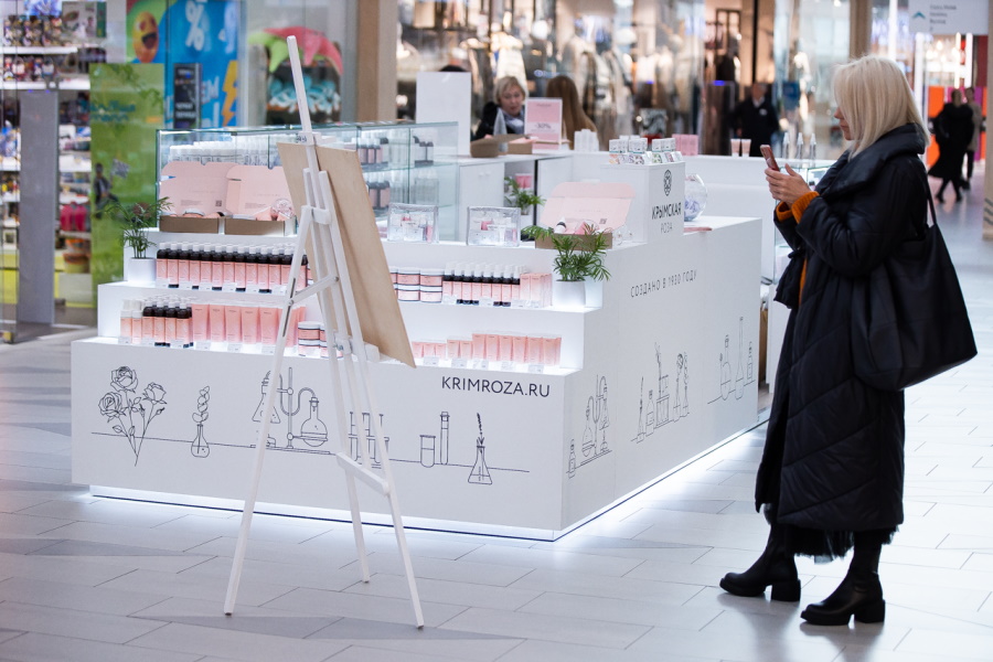 Корнер в ТРЦ «Балтия Молл» (Приморское кольцо, 2) — уже второй магазин косметического бренда «Крымская Роза» в Калининграде. Первый был открыт год назад в торговом центре «Z-Форт».