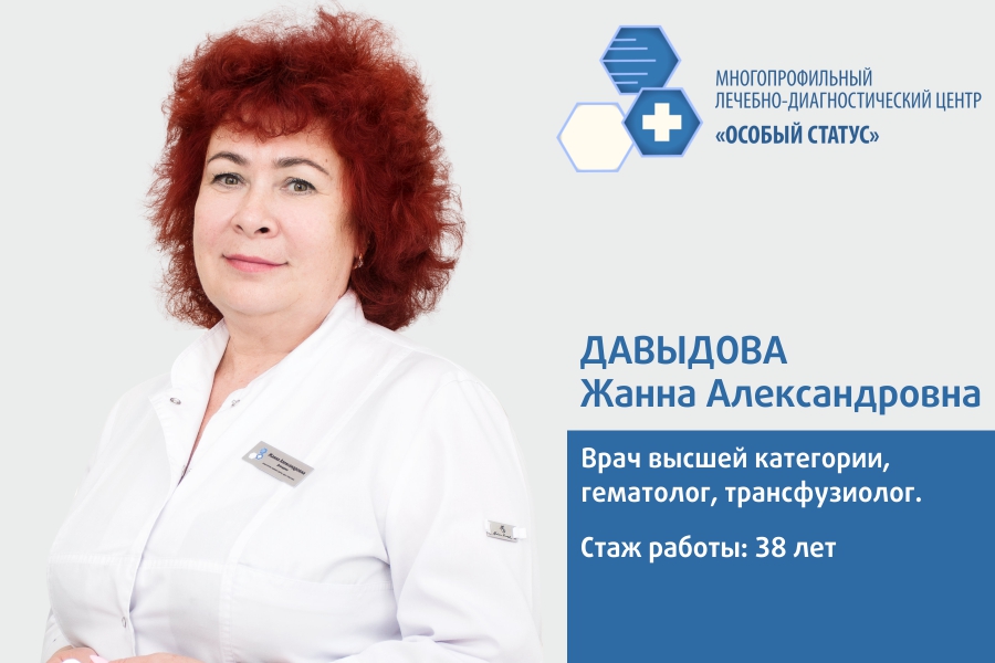 Отлично понимая важность этого направления, в многопрофильном лечебно—диагностическом центре «Особый статус» было решено открыть первое и пока единственное в Калининграде частное специализированное отделение гематологии со стационаром, которое возглавляет врач—гематолог высшей категории Жанна Александровна Давыдова.