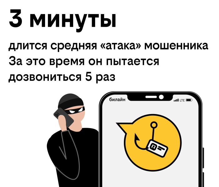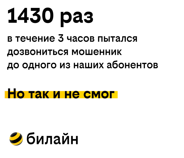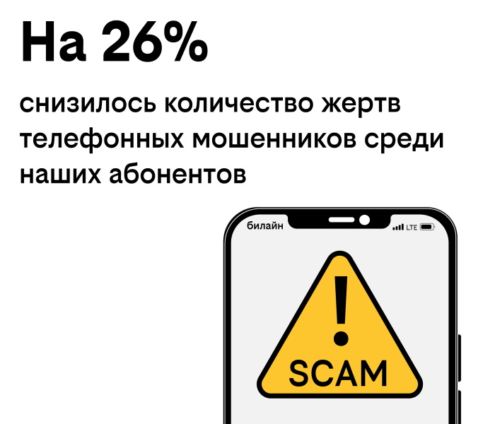 Количество абонентов «билайна», попавших под влияние телефонных мошенников с разной степенью материального ущерба, снизилось на 26% год к году.