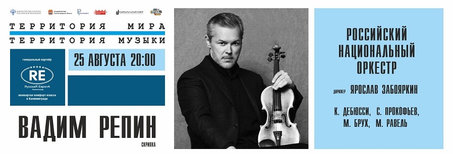 В первый день и впервые в Калининграде выступит выдающийся скрипач Вадим Репин — «волшебник звука», хорошо известный в Америке, Европе, Японии. Народный артист России, Кавалер ордена искусств и литературы Франции, победитель Международного конкурса королевы Елизаветы исполнит Концерт № 1 Макса Бруха и рапсодию Мориса Равеля «Цыганка» на скрипке Страдивари в сопровождении Российского национального оркестра. За пультом оркестра 25 августа будет приглашенный дирижер Мариинского театра Ярослав Забояркин.