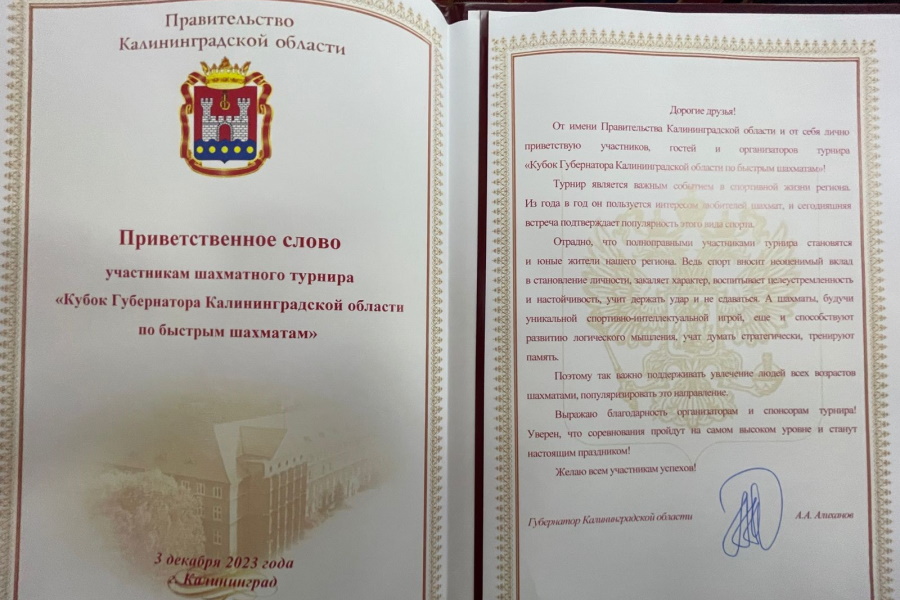 «Мероприятие было организовано при поддержке правительства Калининградской области в лице Антона Андреевича Алиханова, за это от лица Федерации и от себя лично хочу поблагодарить Антона Андреевича, — отметил президент Федерации шахмат Калининградской области, депутат регионального Законодательного собрания Алексей Мартынец (на фото). — Наш губернатор сам занимается спортом и уделяет особое внимание его развитию на территории Калининградской области».