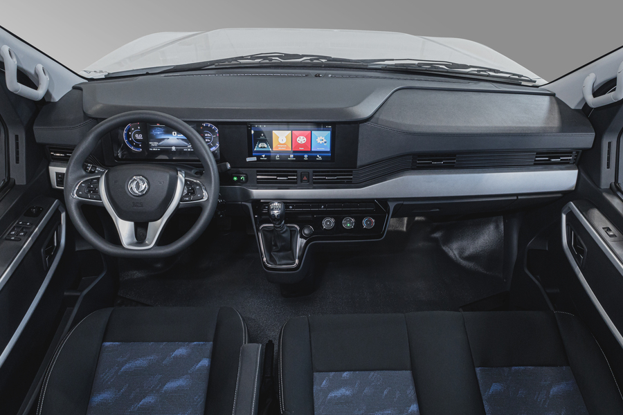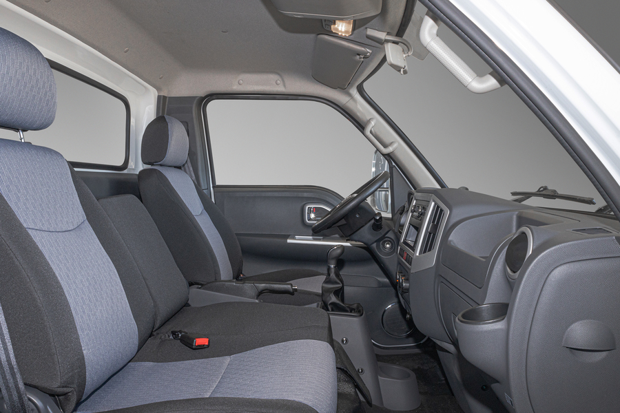 Трехместная кабина обеспечивает комфортные условия для водителя и пассажиров, в базовую комплектацию входит: электрические стеклоподъемники, ГУР, кондиционер, магнитола с Bluetooth и радио.