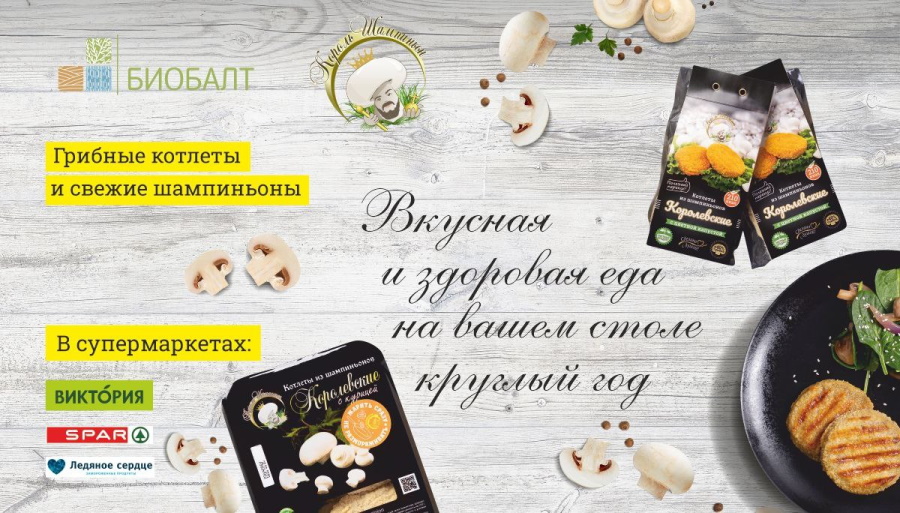 Агроферма «Биобалт» на рынке 7 лет. Это единственное предприятие в области, специализирующееся на выращивании шампиньонов. Постоянно наращивая объемы производства экологически чистых грибов, компания в прошлом году вышла на российский рынок. Теперь ее продукцию под торговой маркой «Король шампиньон» можно найти на прилавках московского «Вкусвилла» и в торговой сети «Мираторг». Для калининградцев продукция доступна в супермаркетах «Виктория», «Спар», сети замороженных продуктов «Ледяное сердце» и в «Лавке вкуса».