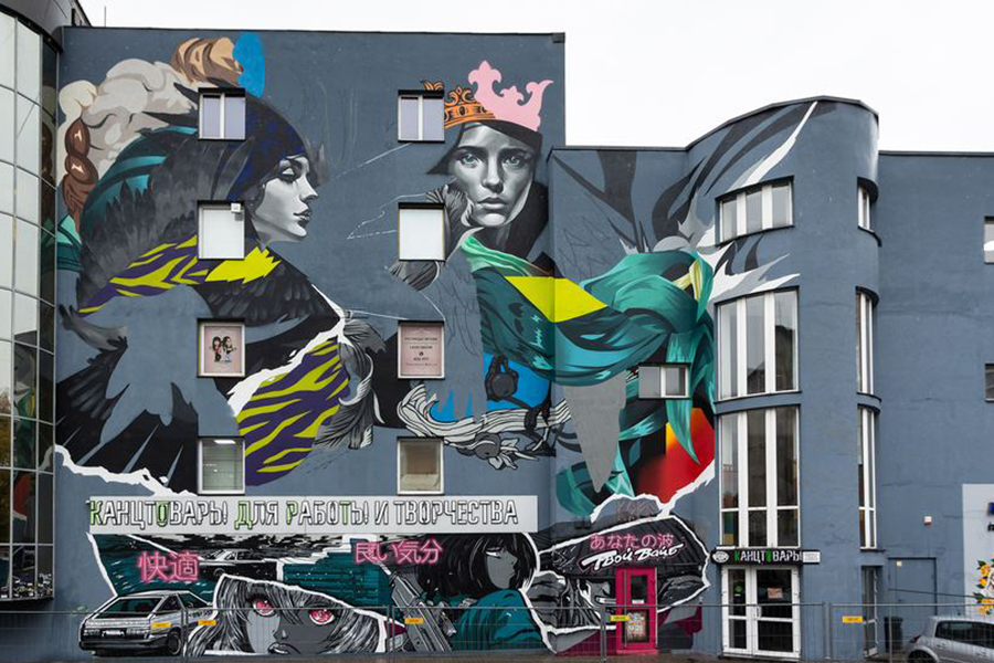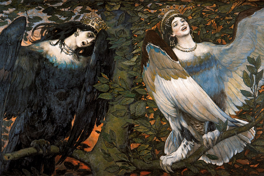 Прогуливаясь в центре Калининграда, обратите внимание на фасад торгового дома «Европа» на Ленинском проспекте, 7-9. Там вы увидите огромный мурал высотой в 3 этажа, на котором изображены женщины-птицы. Это современная интерпретация картины Виктора Васнецова «Сирин и Алконост. Песнь радости и печали».