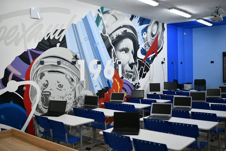 Еще один мурал, но уже посвященный полету Юрия Гагарина в космос, совсем недавно появился в детском технопарке «Кванториум». Обе работы нарисованы высококачественными красками Ottinger.