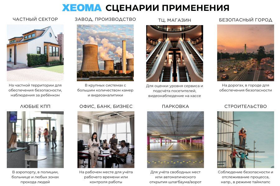 Гибкость Xeoma и её видеоаналитические возможности «на все случаи жизни» позволяют комбинировать одни и те же функции так, что получаются решения, «заточенные» под разные сценарии применения, так что использовать программу можно практически в любой сфере.