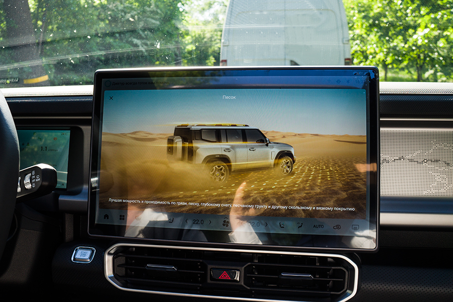 Что касается управления в режиме бездорожья, в меню мультимедиа системы активируется вкладка «off-road», также присуствует низкоскоростной режим круиз-контроля (7-15 км/час). Помимо этого, для повышения проходимости автомобиля, установлен датчик брода. Максимальная глубина преодолеваемого брода 700 мм.