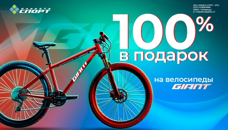4. Также «Планета Спорт» продолжает дарить 100% стоимости велосипеда Giant в качестве скидки на следующую покупку до 30 июня!