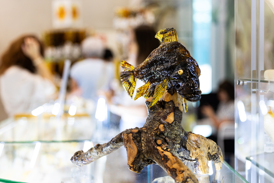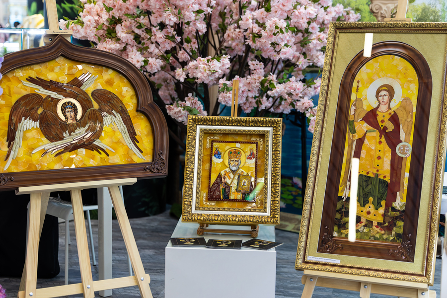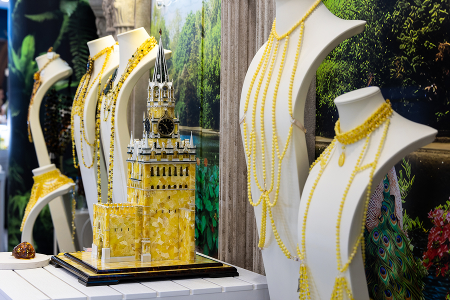 Все дни форума — с 27 по 30 июня — работает выставка-продажа последних коллекций ювелирных украшений, аксессуаров, интерьерного декора и других авторских работ от переработчиков и художников по янтарю. Древняя смола обретает здесь всевозможные формы: от крошечной капли до огромного медведя. И даже бикини можно сделать из янтаря.