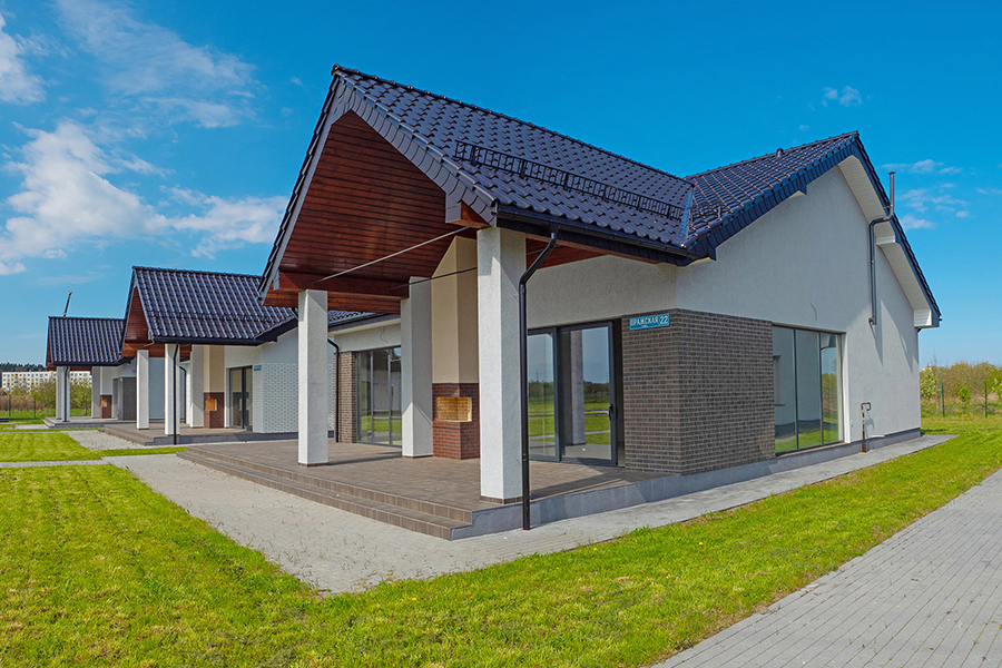 Для вас — 5 роскошных домов с панорамным остеклением, огороженной территорией, просторными дворами и зелеными насаждениями. А еще камин, большая терраса, дорожки из клинкерной плитки, личная парковка для трёх автомобилей и большая гостевая парковка на 20 авто.