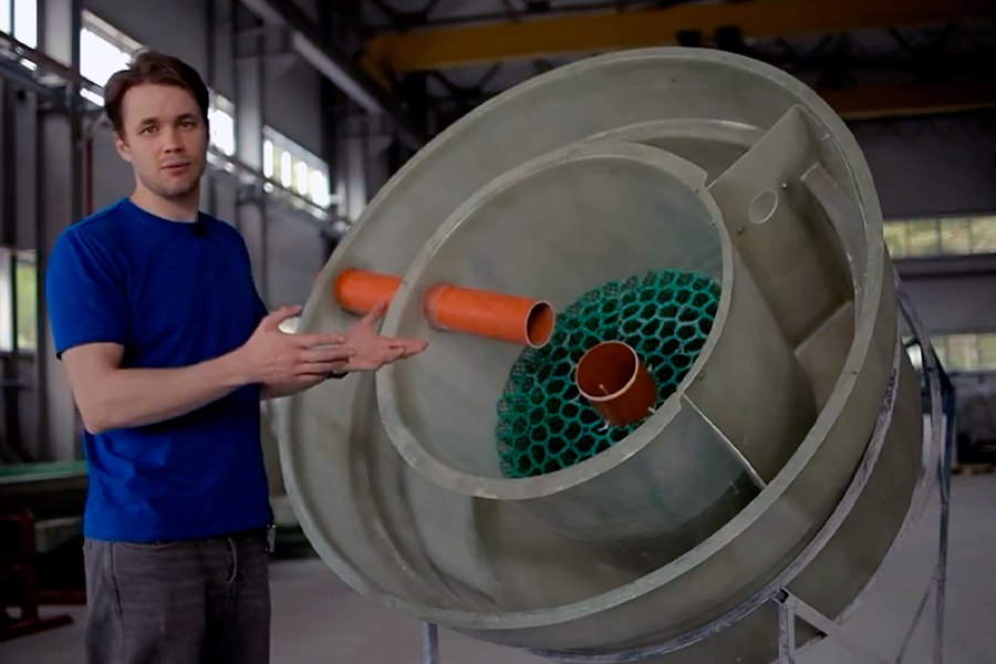 Станция «Таман» - максимально эффективная очистная система. Она является аэробным энергозависимым локальным очистным сооружением, работающим по принципу биореактора. Благодаря чему достигается достаточно высокая степень очистки. Конусная форма станции позволяет концентрировать ил в ее нижней части, откуда аэратор поднимает его вместе со столбом пузырьков и рассеивает на биозагрузке. Далее под действием гравитации стоки проходят через биозагрузку, на которой располагаются аэробные микроорганизмы, и снова оседают в нижней части, откуда их поднимает аэратор наверх. И так процесс происходит беспрерывно: в верхней части станции за биореактором вода отстаивается, взвеси оседают в конусной части, а осветленная вода попадает в следующую камеру, откуда уходит на утилизацию самотеком или с помощью дренажного насоса. При правильном подборе, монтаже и эксплуатации биостанция будет работать в таком режиме как часы долгие годы.