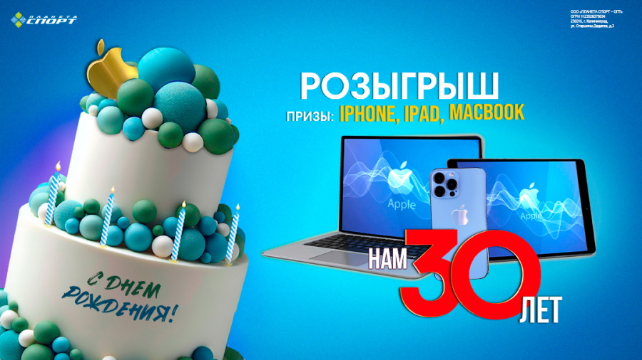 «Планете Спорт» 30 лет, и в честь юбилея проходит розыгрыш: совершай покупки и получи шанс выиграть iPhone, IPad или MacBook!