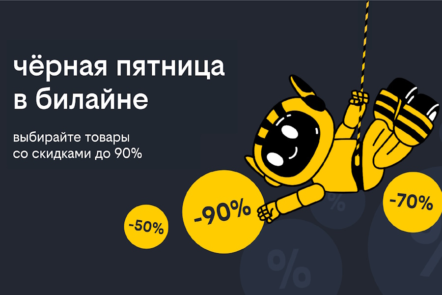 «Билайн» объявляет о запуске «Чёрной пятницы». В интернет-магазине оператора можно приобрести смартфоны, планшеты, ноутбуки, умные часы, беспроводные наушники и другие аксессуары, а также устройства для умного дома и бытовую технику. В акции участвуют около 1000 товаров со скидками до 90%.