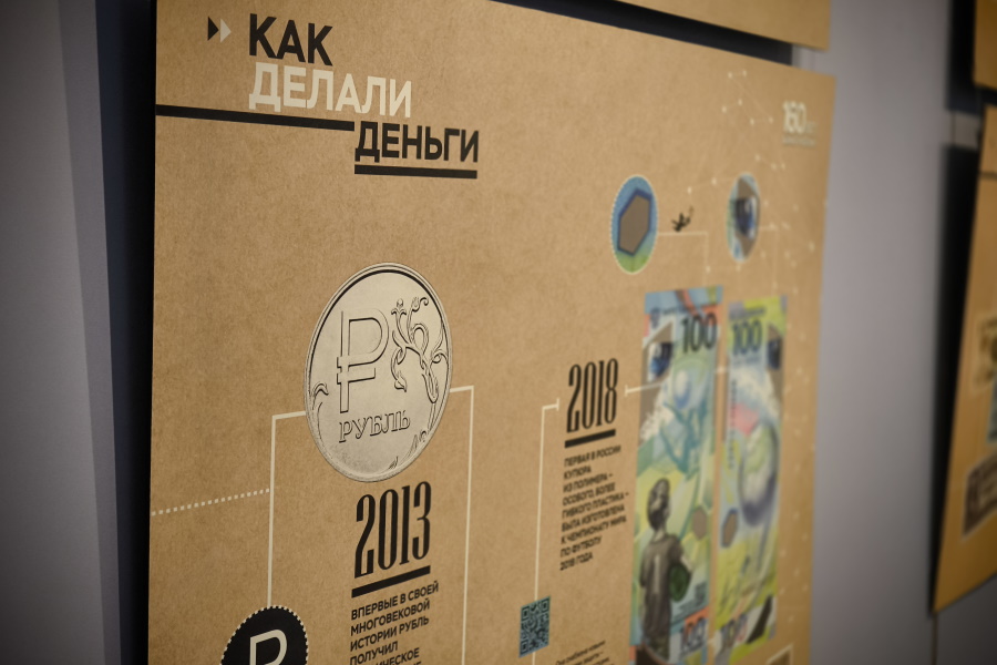 Выставку дополнили предметы, предоставленные Центральным банком России, среди которых — информационные планшеты, которые рассказывают о том, как деньги считали, перевозили, сохраняли на протяжении тысячелетий, а также счетная техника, сейфы, советские купюры и многое другое.