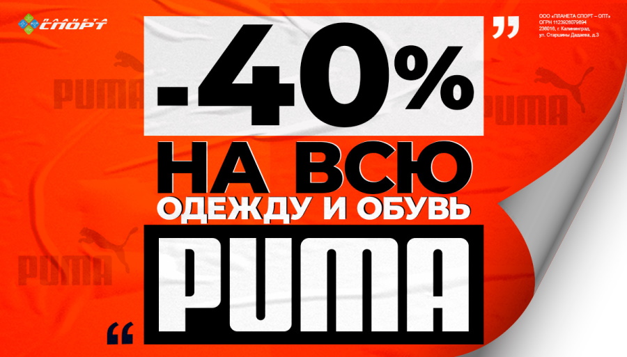 C 10 по 19 января на всю одежду и обувь PUMA скидка −40%!