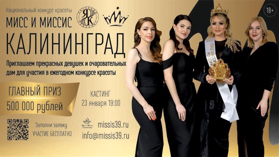 Следующий и последний кастинг состоится 23 января. Принять участие в конкурсе могут все желающие в возрасте от 18 лет. Заполнить заявку можно на сайте. Полуфинал конкурса запланирован на 8 марта, а уже 11 апреля на сцене Дома искусств пройдет финал отборочного тура Национального конкурса красоты «Мисс и Миссис Калининград».