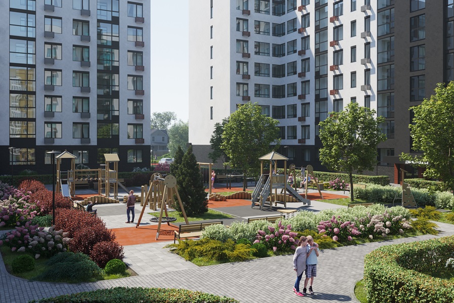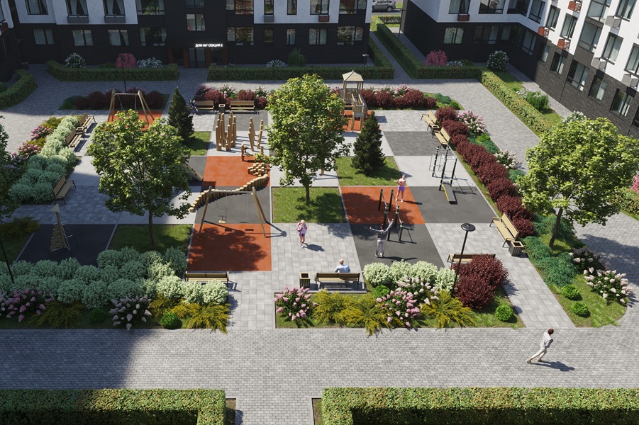 Для обеспечения комфортных и безопасных условий проживания жителей дома проектом предусматривается обустройство зон отдыха, детских игровых площадок, площадок для занятия физкультурой и спортом. Характерной особенностью мест общего пользования станут современные малые архитектурные формы: новейшие переносные и стационарные установки.