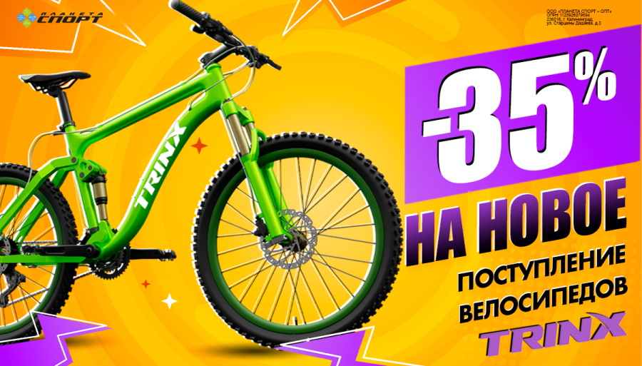 Велосезон открыт, и «Планета Спорт» объявляет: только четыре дня, с 18 по 21 апреля, скидка 35% на новое поступление велосипедов Trinx!