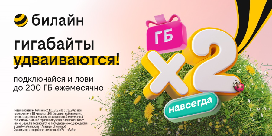 С тарифом «Интернет Live» от «билайна» вам не нужно тянуть провода или устанавливать сложное оборудование — просто раздайте интернет со смартфона или подключите сим-карту к Wi-Fi-роутеру. А чтобы интернета было достаточно, оператор запустил акцию по удвоению гигабайтов: выбираете пакет на 60 или 100 ГБ — и мобильный интернет будет удваиваться бесплатно ежемесячно.