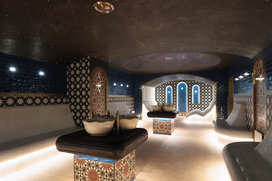 На разных этажах гостей встречают: бассейн с гидромассажем, хаммам-рекордсмен и парные на любой вкус.