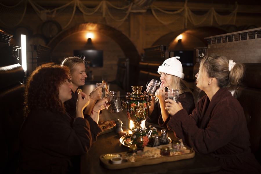Отдохнуть можно не только в парных — рестораны комплекса приглашают продолжить день за вкусной кухней и авторскими напитками.