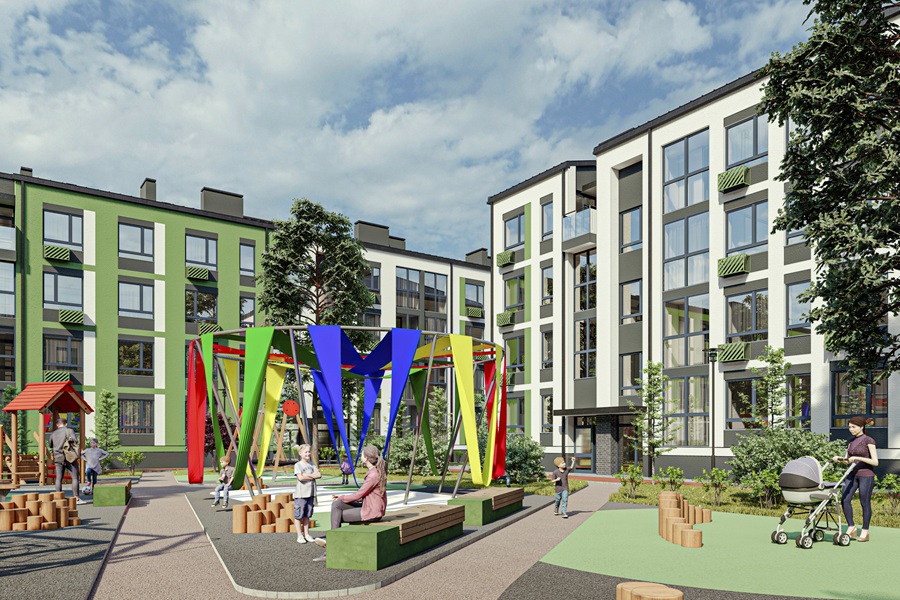 Квартиры здесь имеют площадь от 28 до 62 квадратных метров и продуманные планировки. Вокруг домов создаются уютные зоны для жизни: прогулочные дорожки, зеленые зоны, места для спорта и отдыха, современные детские площадки без автомобилей.