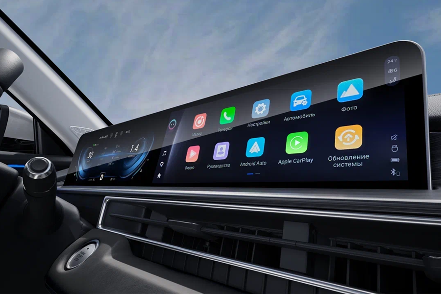 Современная цифровая сдвоенная панель экранов 2*10,25 дюймов, дистанционный запуск двигателя и прогрева салона, голосовое управление, система «Свободные руки», передние датчики парковки, система обзора 360° обеспечивают комфорт, безопасность и практичность в повседневных и дальних семейных поездках.
