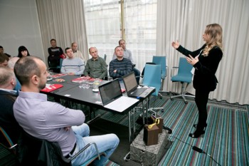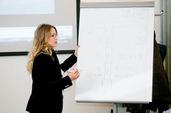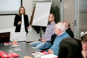 Перед представителями калининградских строительных компаний, среди которых — такие лидеры рынка, как «СК Монолит», «Ремжилстрой», «Реал», «Балтийская бетонная компания», выступила коммерческий директор SAEZ по России очаровательная Александра Белиба. «Краны — это серьёзно», — заявила она и рассказала о том, какие преимущества имеет продукция испанского производителя. Первое и одно из самых