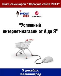В Калининграде состоится мероприятие, посвящённое вопросам создания и продвижения интернет-магазинов. Бесплатный семинар «Формула сайта: Успешный интернет-магазин от А до Я» состоится 5 декабря в деловом центре «Рыбная биржа».