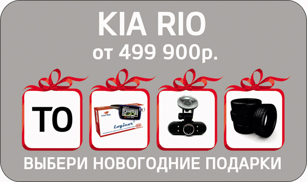 Одно из горячих предложений — выбери новогодние подарки при покупке автомобиля Kia Rio.