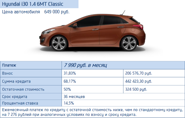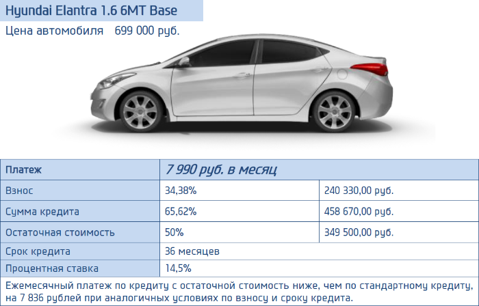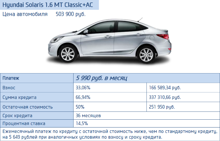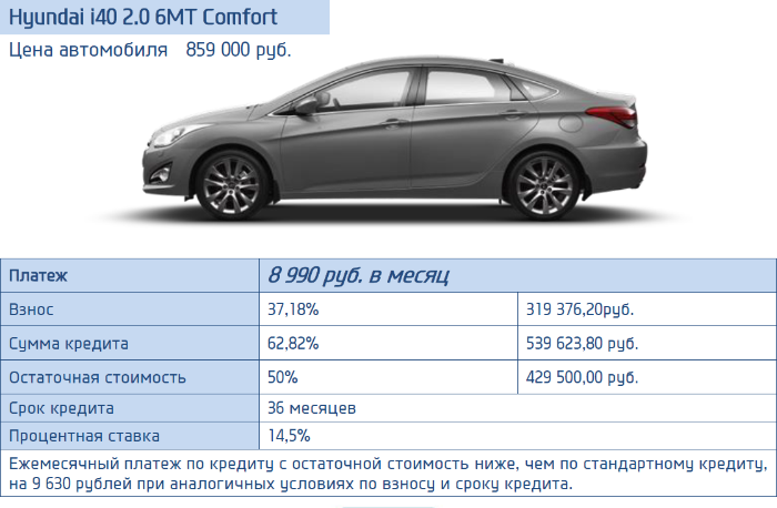 Примеры расчета автокредитов Hyundai с остаточной стоимостью
